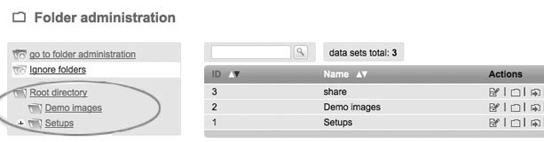New created folders appear below the 'root directory' on the leftend side, are always available and simplify navigating for you.