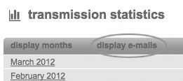 In the transmission- statistic you see the data collected from bm_mail (Traffic, Total). Also you see, if exist, the numbers of test-sendings, clicks on the subsriber-link and the number of subscribers who have completed the optin-confirmation. Next to the view 'display months' you also can select 'display e-mails'. So bm_mail outputs the above mentioned figures for each mailing.